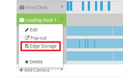 2. Select your camera and use the small arrow next to the name to bring up the menu. Select Edge Storage.