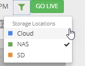 1. Right next to the Go Live/Live button you will have a filter. Click filter to show specific storage locations. In this case select NAS.